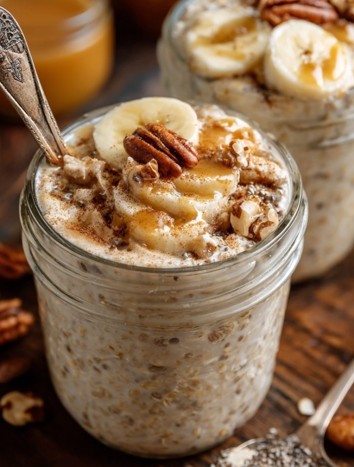 I’m a firm believer that food tastes better when it looks beautiful! I love serving these oats in a clear glass jar or bowl so you can see all the lovely layers. For a real “cafe-at-home” experience, top with a few thin slices of fresh banana, a sprinkle of crunchy chopped pecans, and a tiny, extra dusting of cinnamon. If I’m feeling fancy, I’ll add a graceful drizzle of almond butter or a light swirl of maple syrup. It’s a breakfast that looks and feels indulgent, setting a positive, joyful tone for the entire day.
