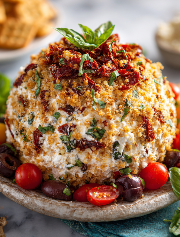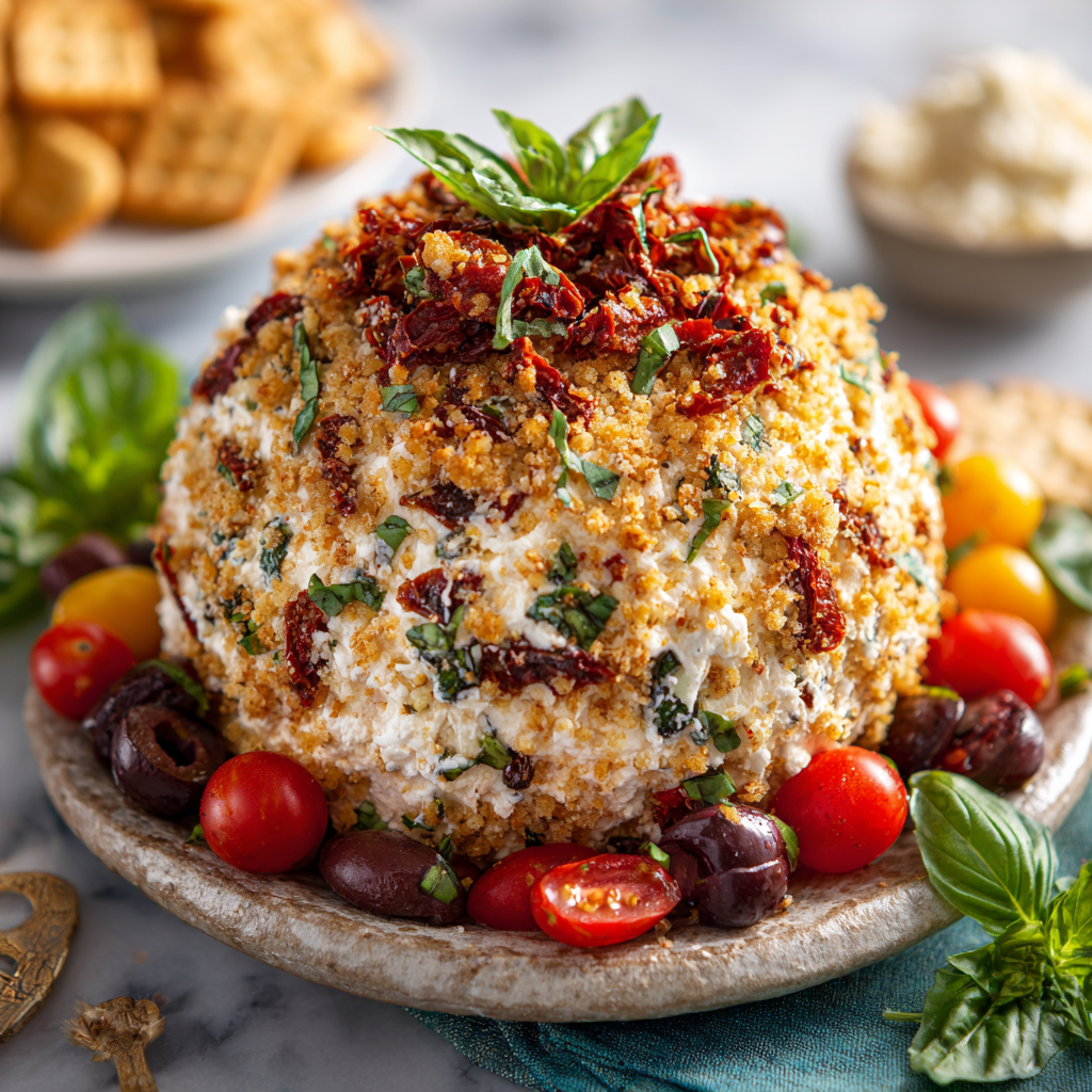 Imagine a creamy base loaded with sun-dried tomatoes, fresh basil, briny olives, and a mix of savory cheeses. Now, picture that glorious mixture rolled in a crunchy, golden blanket of toasted panko breadcrumbs and more of those intense sun-dried tomatoes. The result? A textural symphony in every single bite. It’s creamy, it’s crunchy, it’s savory, and it’s fresh. Served with some crispy crostini or simple crackers, it’s the kind of appetizer that disappears in minutes, leaving everyone begging for the recipe. So, let’s roll up our sleeves and create some kitchen magic together!