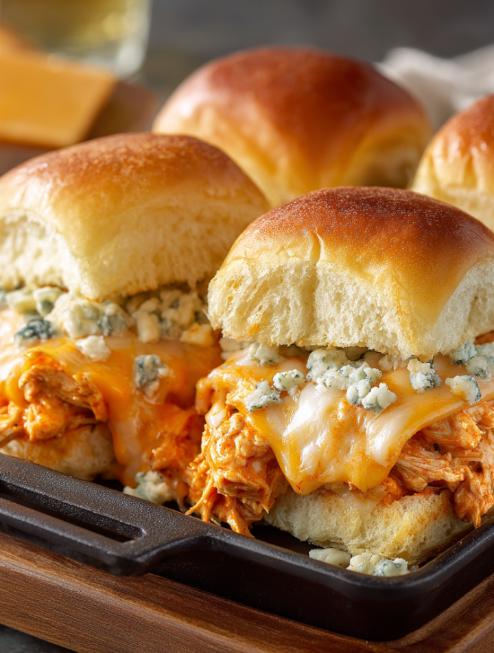 Spicy, cheesy, and dripping with flavor—these Buffalo Chicken Sliders deliver all the heat and comfort of classic buffalo wings, minus the mess. Tucked into soft Hawaiian rolls and smothered with melty cheese and blue cheese crumbles, they’re a guaranteed hit at any gathering.