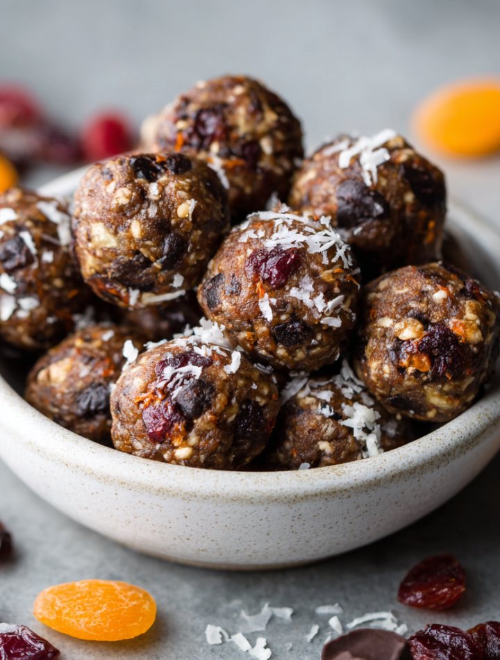 - Tropical Escape: Use macadamia nuts instead of almonds, dried pineapple instead of cherries, and roll them in toasted coconut for a sunny, tropical vibe.