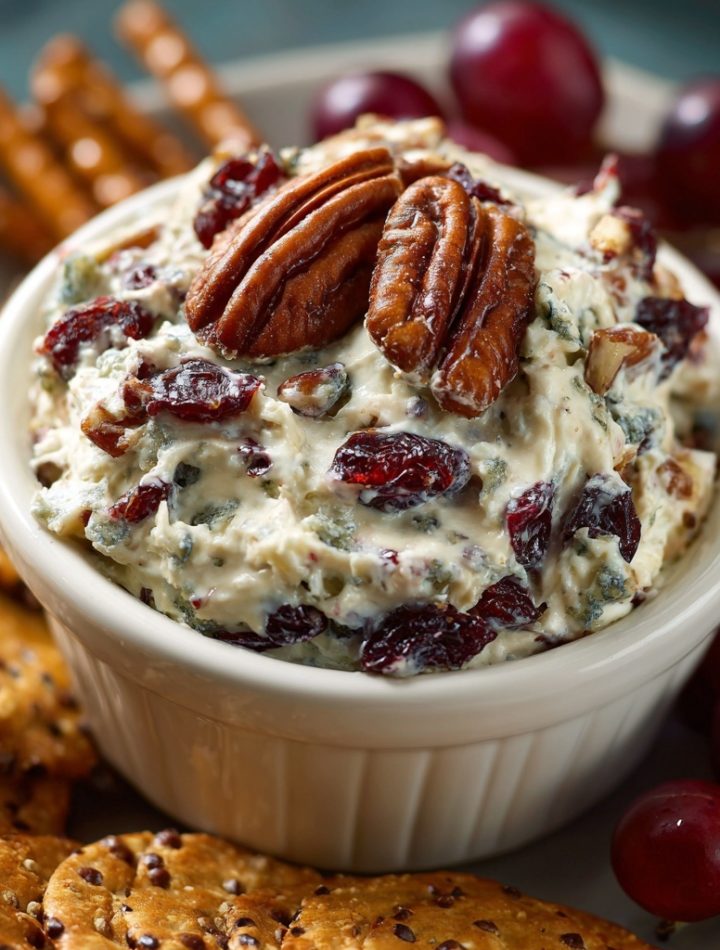 This rich, tangy, and slightly sweet cream cheese spread is a flavor powerhouse. Creamy base? Check. Bold blue cheese? Check. Sweet craisins, a touch of heat, and a nutty pecan crust? Absolutely. Perfect as a holiday appetizer or elegant snack, this spread is quick to prep and unforgettable to serve.