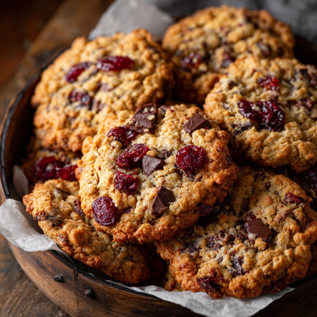 These hearty, chewy cookies bring together tart cranberries, rich dark chocolate, and wholesome oats for the perfect balance of indulgence and feel-good flavor. With crispy edges and soft centers, they’re a crowd-pleaser you’ll reach for again and again—ideal for holiday trays or everyday treats with a cup of coffee.