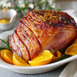 This holiday classic is tender, juicy, and full of flavor. The ham is baked slowly, then brushed with a glossy glaze made of honey, orange, and brown sugar that caramelizes beautifully in the oven. Perfect for Christmas, Easter, or any festive gathering — it’s a centerpiece that always impresses.