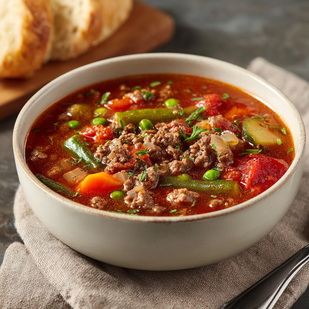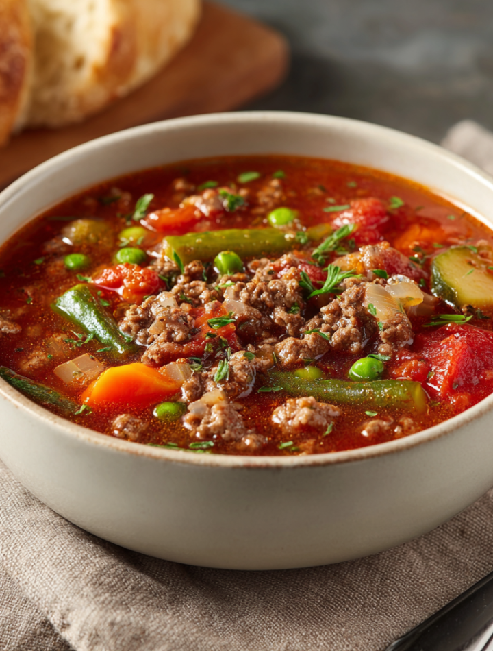 This isn’t just “throwing things in a pot.” This is my secret weapon for turning a chaotic weeknight into a moment of cozy comfort. We’re talking tender ground beef, a savory broth, and a rainbow of veggies that come together in a harmony of flavors that will absolutely make your taste buds dance. It’s proof that healthy, feel-good food doesn’t have to be complicated or take hours. It’s the ultimate hug in a bowl, and it’s ready before you can even decide what to watch on TV. So, tie on your apron—let’s make something nourishing, fast, and totally worth licking the spoon.