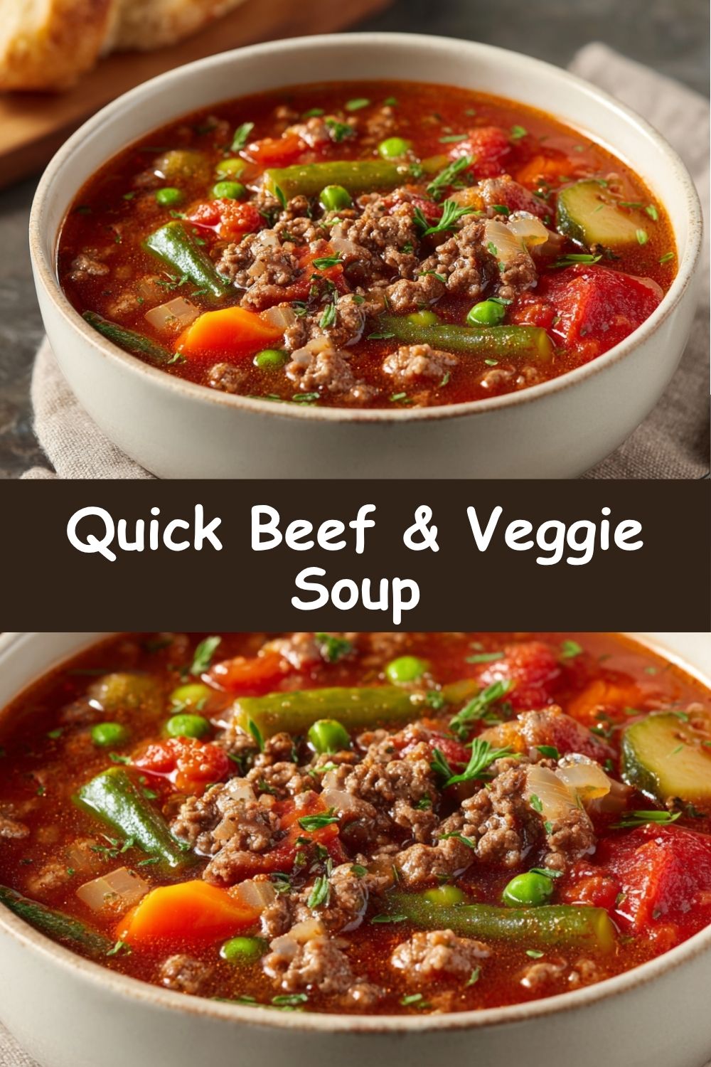 This Quick Beef & Veggie Soup is a wholesome and hearty meal that comes together in just 30 minutes. Made with ground beef, mixed vegetables, and a flavorful broth, it’s the perfect weeknight dinner that’s both comforting and nutritious. Great for meal prep or warming up on chilly days.