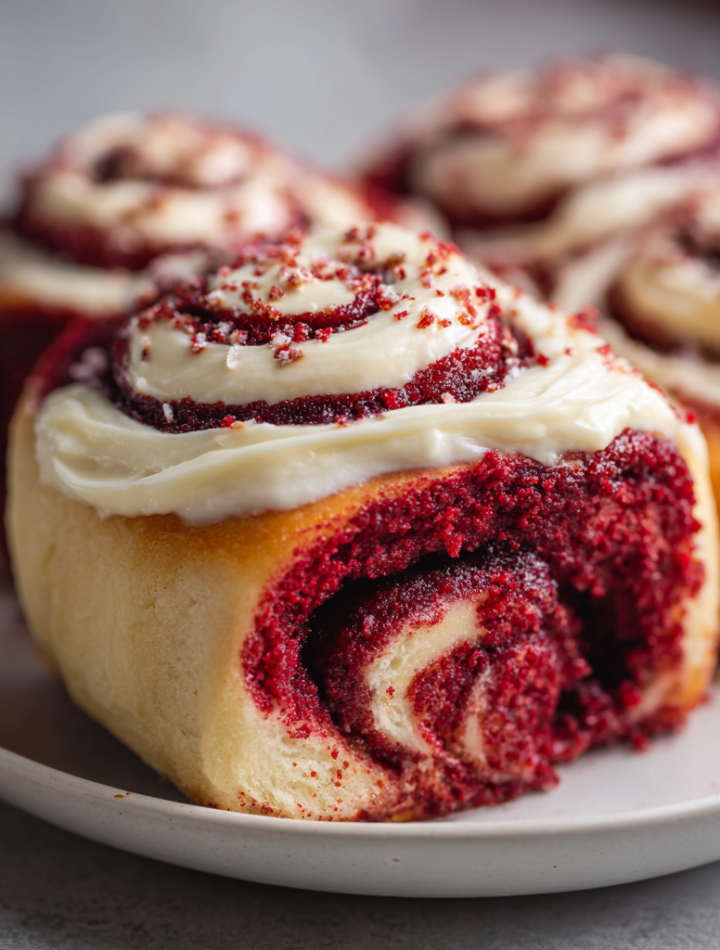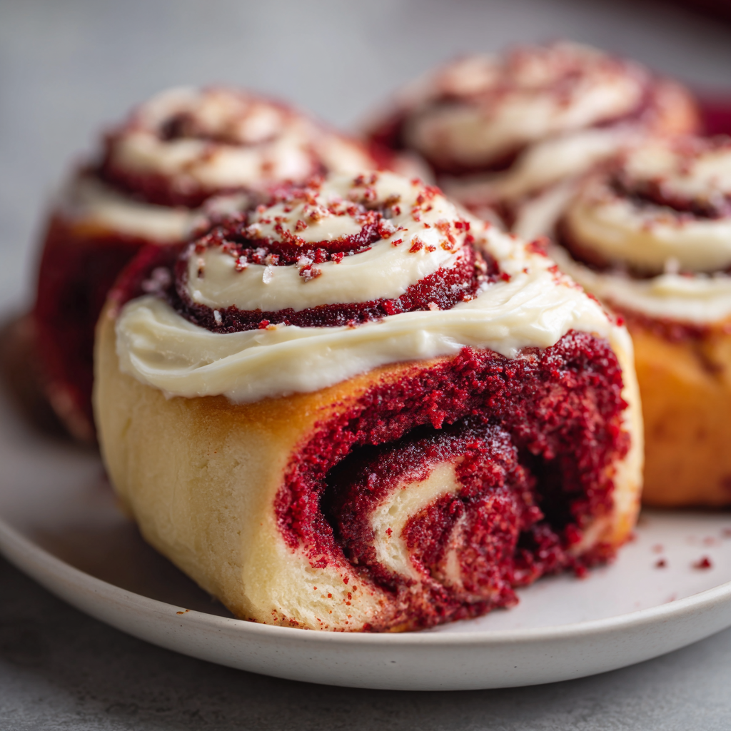 Soft, fluffy rolls made with cocoa and red velvet flavor, swirled with cinnamon sugar, and topped with tangy cream cheese frosting. Great for brunch, Valentine’s Day, or whenever you want something festive and indulgent.