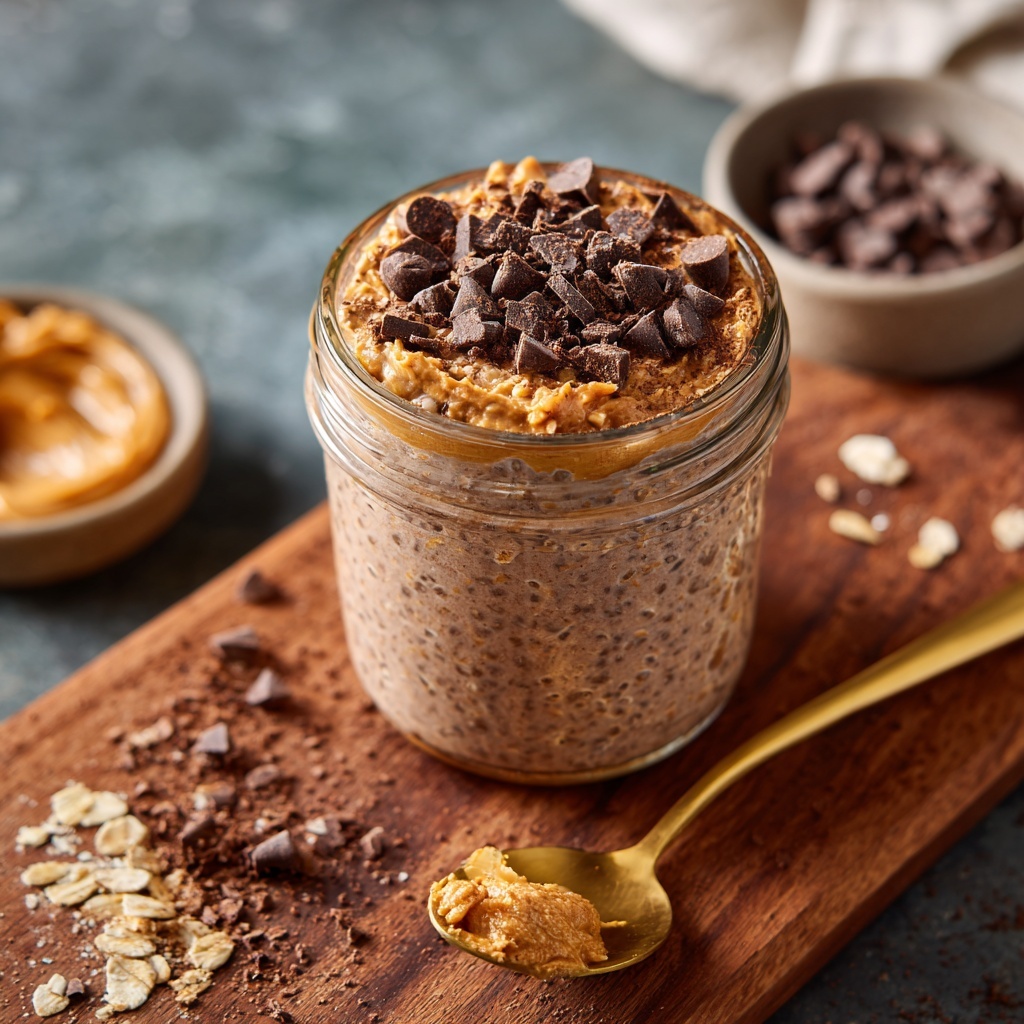 Morning has arrived! Take your jar out of the fridge. Give the oats a really good stir—you’ll see how they’ve transformed into a thick, luxurious pudding. If they seem a bit too thick for your liking, this is the moment to add a splash of milk and stir it in until it reaches your perfect consistency. Now, for the fun part: the toppings! I love adding a extra drizzle of peanut butter, a few more chocolate chips for crunch, and sometimes even a few banana slices or a sprinkle of sea salt to really make the flavors pop. Eat it straight from the jar, or pour it into a bowl if you’re feeling fancy. Your delicious, empowering breakfast is served!