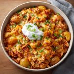 This one’s a triple win: BBQ flavor, creamy ranch goodness, and slow cooker ease—all baked into a hearty, family-friendly casserole. Tender shredded chicken simmers with ranch seasoning and BBQ sauce, then gets layered over soft, seasoned potatoes and topped with melty cheese. It’s comfort food that works just as well for a weeknight dinner as it does for meal prep.