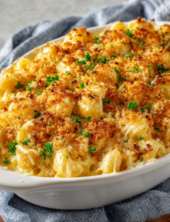 Serve warm, garnished with fresh parsley, cheese, or bacon if desired.
