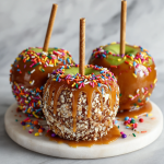 We’re not just making any caramel apples. We’re creating a whole experience. Imagine the crisp snap of a fresh apple giving way to a layer of rich, creamy, impossibly smooth caramel. Now, picture that same apple rolled in a carnival of toppings—crunchy Oreos, salty pretzels, melty peanut butter cups, or a shower of colorful sprinkles. This is the kind of treat that turns an ordinary afternoon into a memory and makes any gathering feel like a celebration.