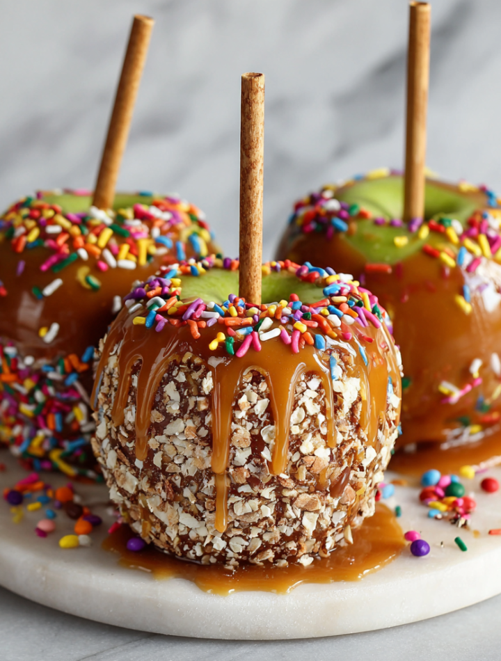 We’re not just making any caramel apples. We’re creating a whole experience. Imagine the crisp snap of a fresh apple giving way to a layer of rich, creamy, impossibly smooth caramel. Now, picture that same apple rolled in a carnival of toppings—crunchy Oreos, salty pretzels, melty peanut butter cups, or a shower of colorful sprinkles. This is the kind of treat that turns an ordinary afternoon into a memory and makes any gathering feel like a celebration.