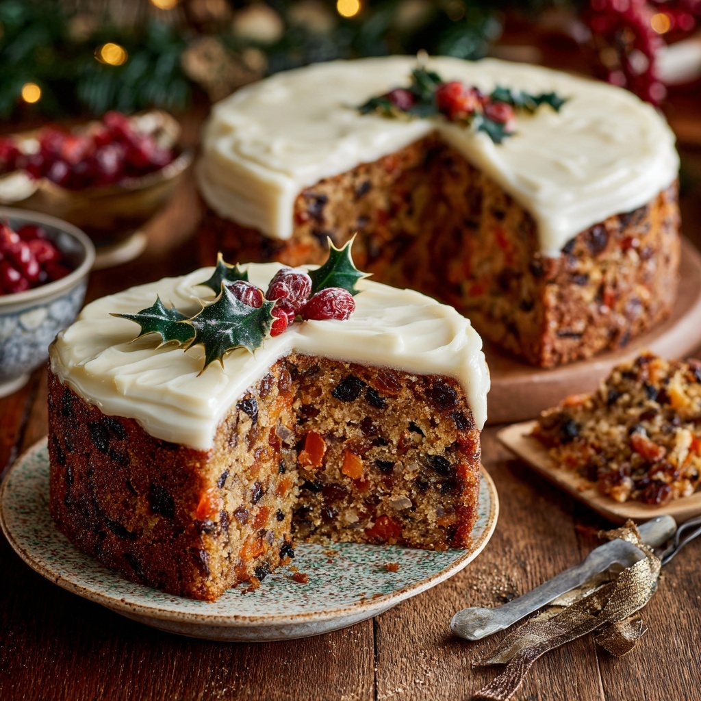 When the big day arrives, unwrap your beautiful cake. You can serve it simply in thick slices with a cup of strong coffee or tea. For a truly show-stopping presentation, I love to decorate it with a layer of marzipan and royal icing, creating a classic snowy scene. Or, for a more rustic look, brush the top with a little warm apricot jam for a glossy sheen and decorate with whole pecans and dried orange slices. However you slice it, it’s a moment of pure, unadulterated holiday joy.