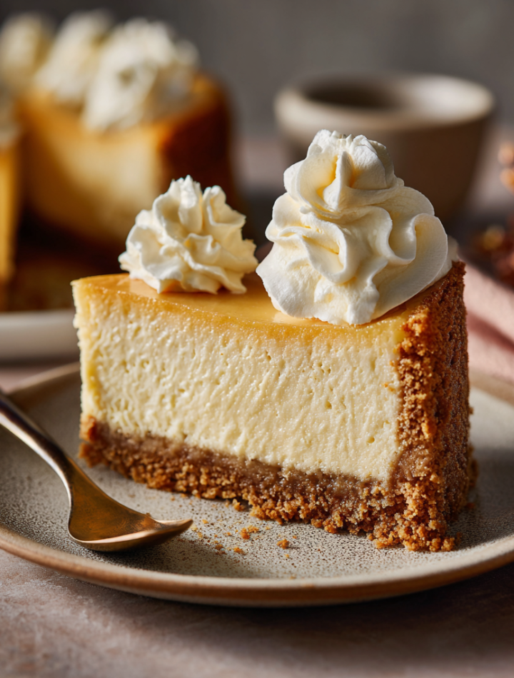 Step 6: The Finishing Touch. Right before serving, whisk together the ½ cup sour cream, 2 tbsp powdered sugar, and ½ tsp vanilla extract. Spread it gently over the top of the chilled cheesecake. Slice with a sharp knife dipped in hot water for clean, beautiful slices.